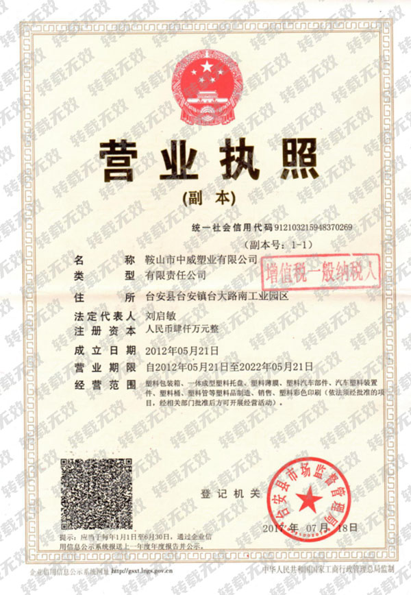 公司始創(chuàng)于 2012 年,是一家集大型倉(cāng)儲(chǔ)物流產(chǎn)品應(yīng)用研發(fā)、制造于一體的大型注塑企業(yè)。主要生產(chǎn)塑料托盤(pán)、塑料周轉(zhuǎn)箱、塑料線(xiàn)盤(pán)、塑料垃圾桶、汽車(chē)電瓶殼等塑料產(chǎn)品。公司位于鞍山市臺(tái)安縣工業(yè)園區(qū)京沈高速公路出口處,地理位置優(yōu)越,交通便利。公司占地面積 40000 平方米,注冊(cè)資本 4000 萬(wàn)元,固定資產(chǎn) 6000 萬(wàn)元,2019 年產(chǎn)值 9000 余萬(wàn)元,現(xiàn)有員工135 人,技術(shù)骨干 50 多人。